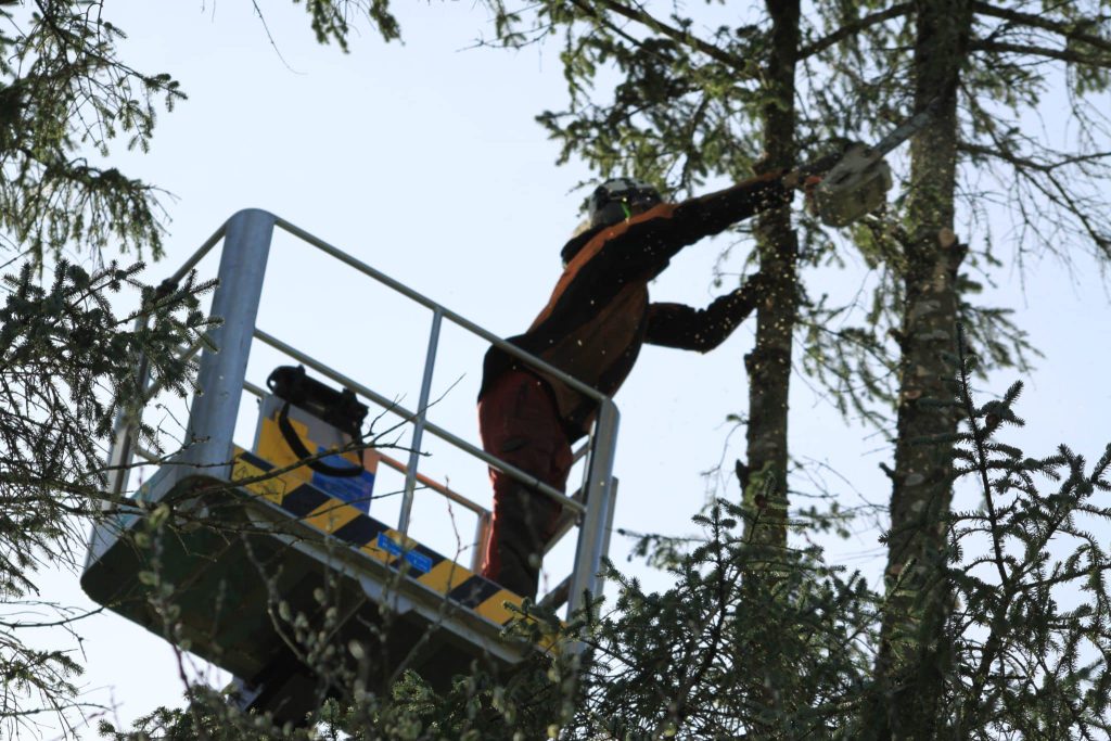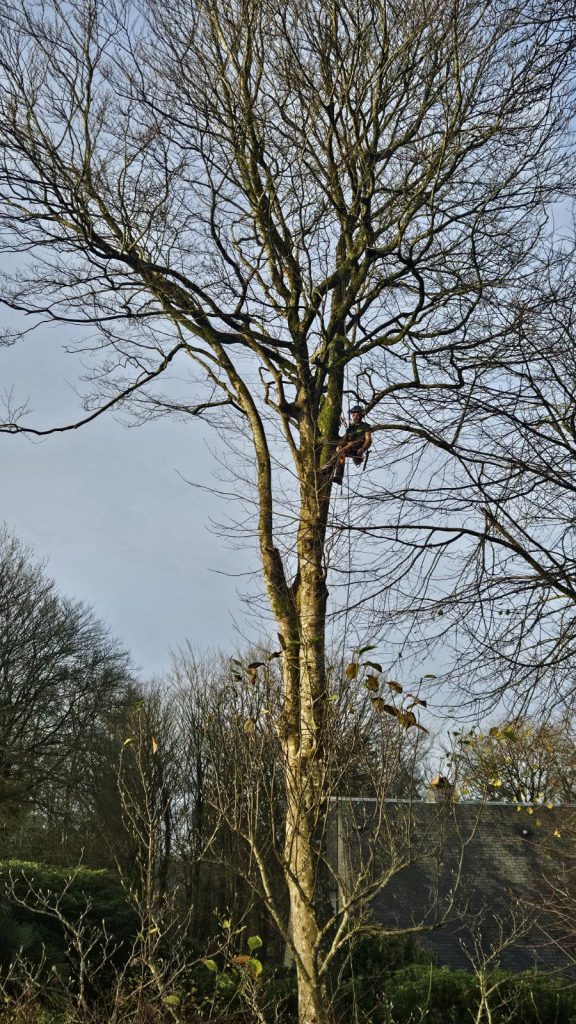 Intervention tardive due au contexte des conséquences de la tempête Ciaran. Mais l’intervention a été excellente. Il s’agissait d’un élagage en hauteur, délicat et à risque pour l’intervenant.